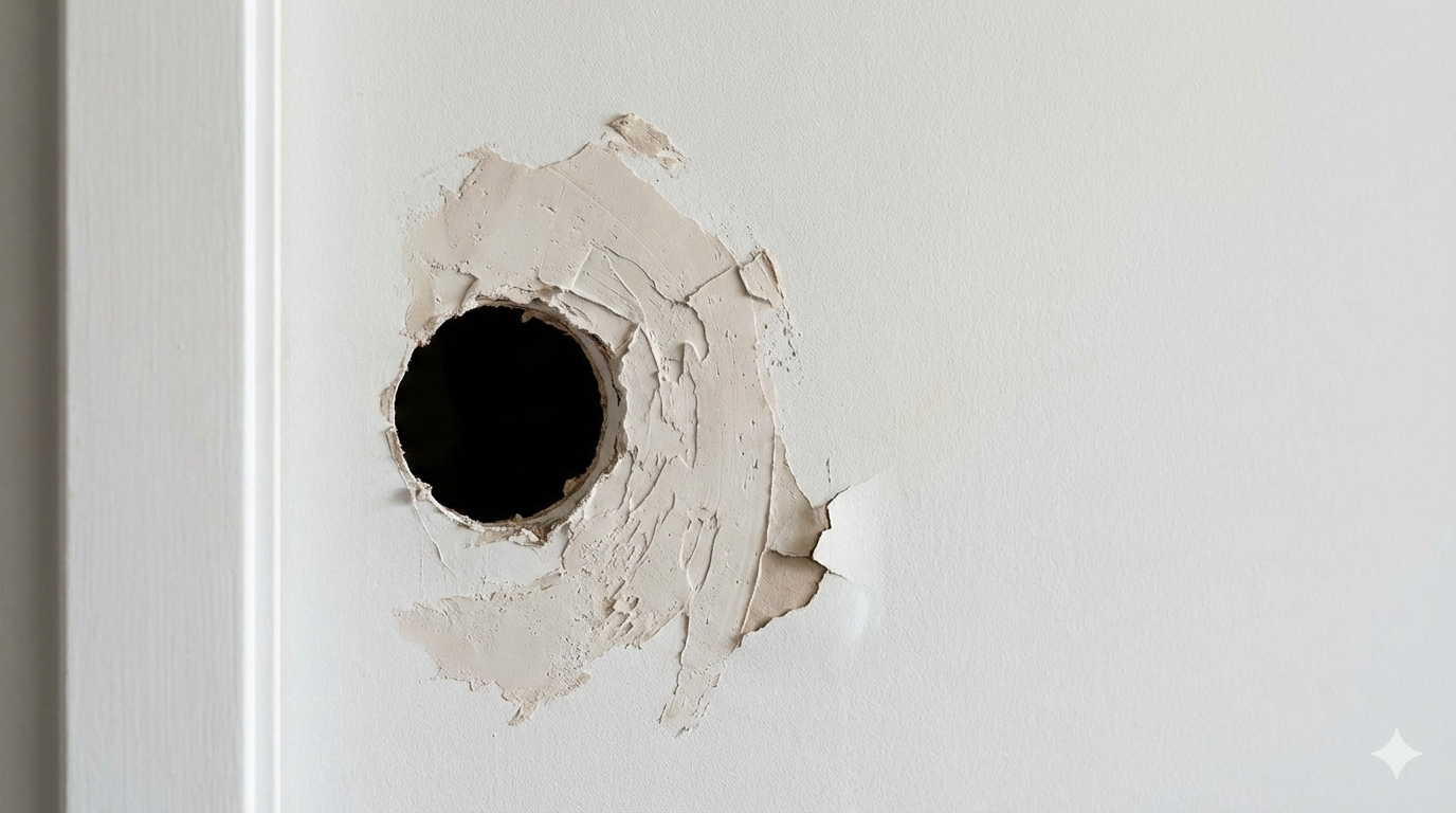 The tenant attempted a DIY patch. The repair turned unstable. The compound build-up turned uneven and messy. We removed the failed work, then rebuilt the repair to a smooth paint ready finish.